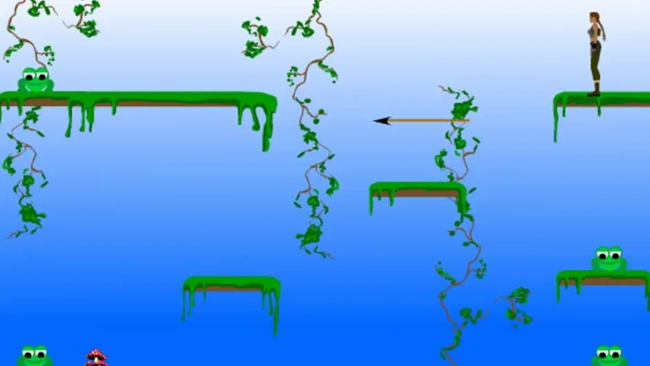Tomb Raider flash game was a promotional game for the Tomb Raider: The Angel of Darkness on the Japanese Tomb Raider site in 2004. The gameplay consists of Lara croft collecting coins, frogs, bananas, crystals, urns, and ankhs. Once all the treasures are collected on the map, a golden key spawns, which will end the level when reached. There are various hazards and enemies in her path. Although Lara carries her dual pistols, she can not use them, and enemies need to be avoided.