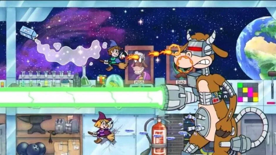 Bobby and Penny, rookie magicians, enter an adventure to get back to their dimension and retrieve the Magic Book in Enchanted Portals, a co-op 2D platformer.