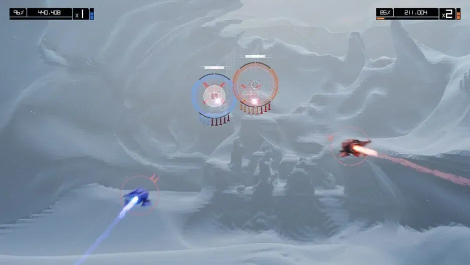 Speed through stunning alien worlds tracing ribbons of light to release the energy in the music. Fly solo or team up with a friend. Encounter strange enemies and giant boss creatures. Unleash devastating missile barrages and rain heavy cannon fire to the beat of the epic soundtrack from Monstercat.