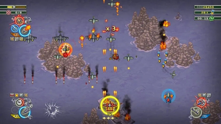 De deasupra câmpului de luptă, acest shoot ‘em up cu derulare verticală aruncă jucătorii în luptă aeriană bombastică cu o narațiune complet vocalizată. Pe măsură ce Aces revin, ei trebuie să evite o ploaie neîncetată de gloanțe și să înfrunte mașini de război înfricoșătoare, inclusiv lupte intense cu șefi. Acțiunea combină impulsul stilului arcade cu atenția inspirată de simulator pentru lupta aeriană, făcând fiecare cursă să pară tensionată și receptivă. Jucătorii își construiesc puterea prin pick-up-uri masive și prin sincronizarea abilităților speciale pentru a sparge valurile inamice. Echipele devin mai puternice pe măsură ce fiecare membru avansează de nivel și deblochează propriul arbore de abilități. Fie că zboară solo sau coordonează cu alții, jocul suportă modul single player, multiplayer și co-op, inclusiv co-op local cu până la 3 prieteni pentru până la 4 jucători.